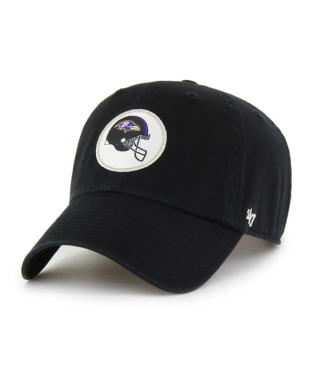 BALTIMORE RAVENS HELMET PATCH BLACK HAT, HARD HAT CLEAN UP, ADJ FABRIC STRAP